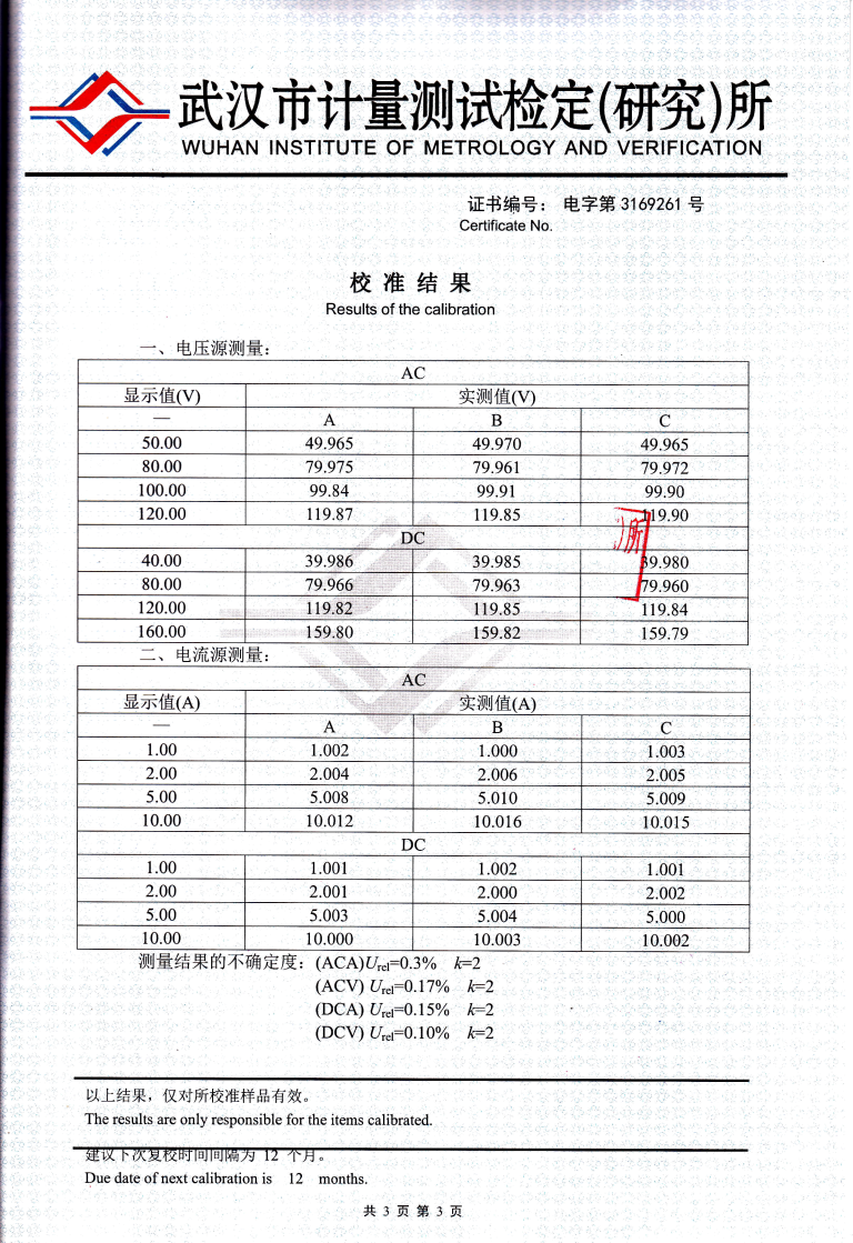 | 分辨力 | 0.1A~10A分辨力 | 1mA | |