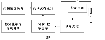 其中穩(wěn)壓源是高精度低紋波電源,可提供10A的電流輸出。穩(wěn)流源輸出的電流受其分擋切換控制電路的控制。當(dāng)測量選擇不同擋位時,輸出不同的穩(wěn)定電流。當(dāng)恒流電流通過被測電阻時在被測電阻上產(chǎn)生穩(wěn)定的電壓信號,該信號經(jīng)計算機處理后由液晶顯示器直接顯示電阻值。