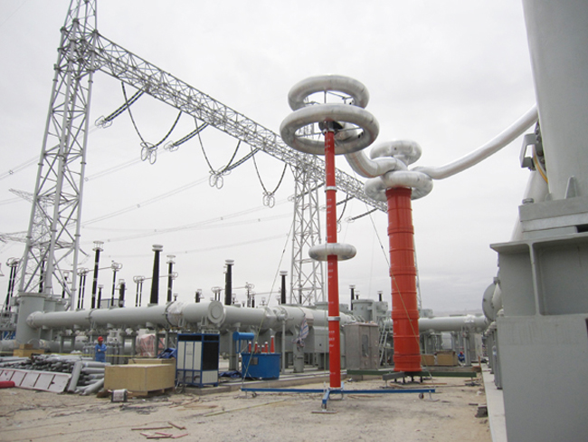 其中本次培訓(xùn)的重點(diǎn)是YTC850--5200kVA-260kV變頻串聯(lián)諧振耐壓試驗(yàn)裝置,該裝置主要針對(duì)220kV高壓套管、隔離開(kāi)關(guān)的交流耐壓試驗(yàn), 220kV主變的交流耐壓試驗(yàn)設(shè)計(jì)制造。具有較寬的適用范圍,是地、市、縣級(jí)高壓試驗(yàn)部門(mén)及電力安裝、修試工程單位理想的耐壓設(shè)備。該裝置主要由變頻電源、勵(lì)磁變壓器、電抗器、電容分壓器組成,裝置具有過(guò)壓、過(guò)流、零位啟動(dòng)、系統(tǒng)失諧(閃絡(luò))等保護(hù)功能,過(guò)壓過(guò)流保護(hù)值可以根據(jù)用戶(hù)需要整定,試品閃絡(luò)時(shí)閃絡(luò)保護(hù)動(dòng)作并能記下閃絡(luò)電壓值,以供試驗(yàn)分析。整個(gè)裝置單件重量很輕,便于現(xiàn)場(chǎng)使用。裝置具有三種工作模式,方便用戶(hù)根據(jù)現(xiàn)場(chǎng)情況靈活選擇,提高試驗(yàn)速度。工作模式為:全自動(dòng)模式、手動(dòng)模式、自動(dòng)調(diào)諧手動(dòng)升壓模式.